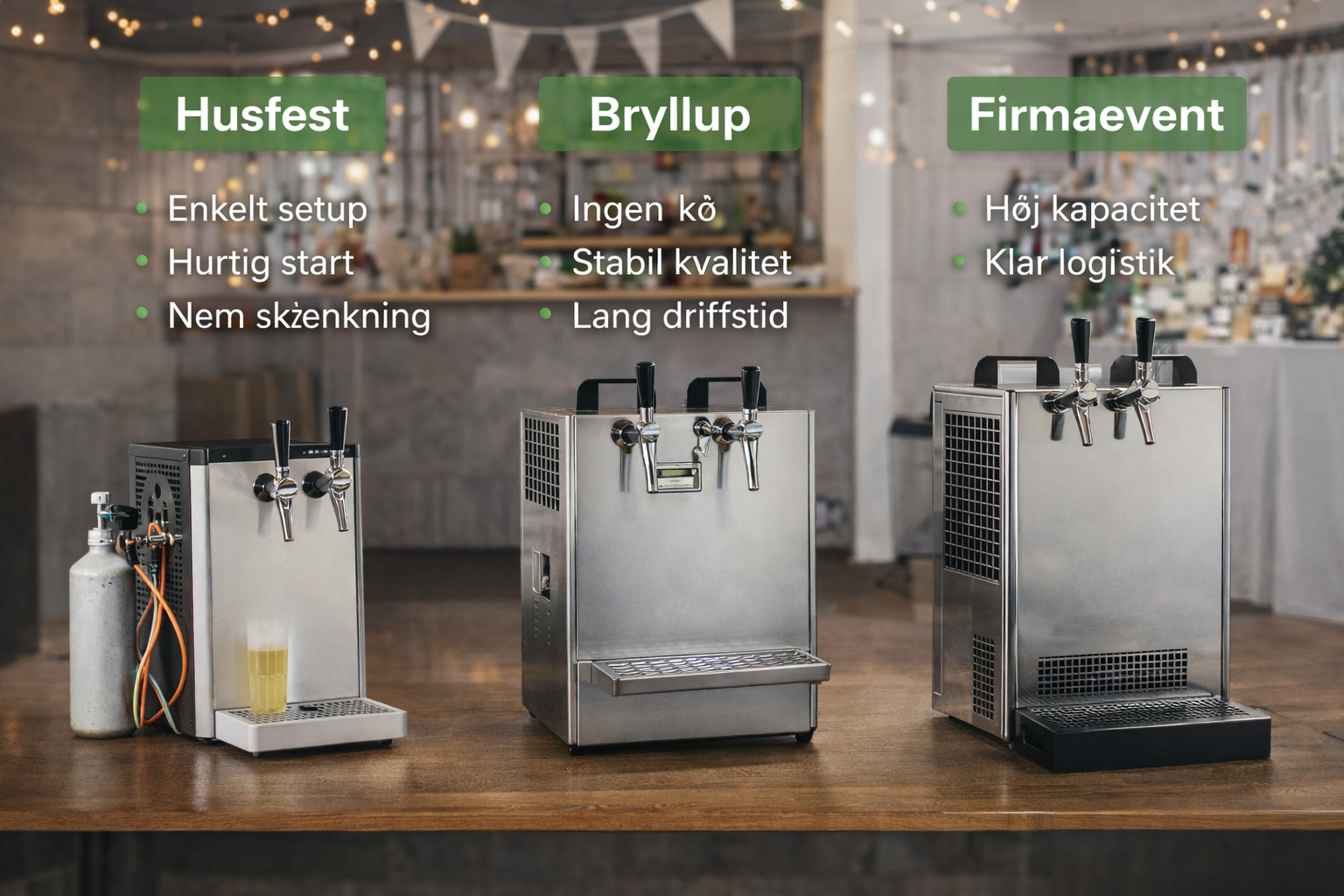 Hvis du vil starte med at se, hvilke løsninger der typisk passer til private fester og events, så tag udgangspunkt i fadølsanlæg til fest og brug guiden her til at vælge rigtigt første gang.